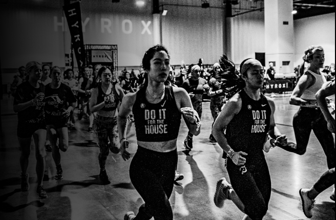 HYROX combines both running & functional workout stations, where participants run 1km, followed by 1 functional workout station, repeated eight times.